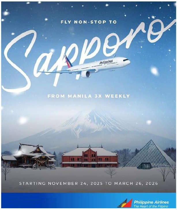 A partire dal 24 novembre 2025, PAL attiva tre voli a settimana tra Manila e Sapporo. Nessuno scalo, nessuna preoccupazione.